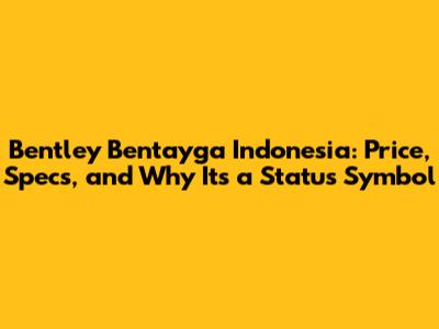 Bentley Bentayga Indonesia: Price, Specs, And Why It's A Status Symbol