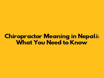 Chiropractor Meaning In Nepali: What You Need To Know