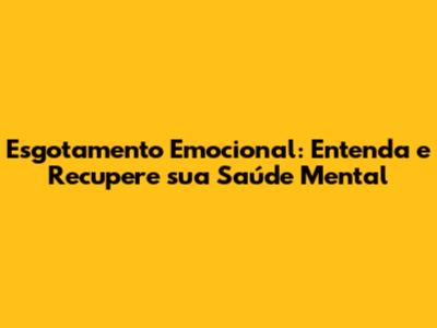 Esgotamento Emocional: Guia Completo Para Recuperar Sua Saúde Mental
