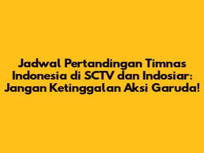 Guys, kalau kalian penggila bola, khususnya pendukung setia Timnas Indonesia, pasti sudah gak sabar kan menanti jadwal pertandingan mereka? Nah, kabar baiknya, sebagian besar laga Timnas Indonesia bisa kalian saksikan secara langsung di dua stasiun TV favorit kita, yaitu SCTV dan Indosiar! Buat kalian yang penasaran, yuk kita bedah jadwal lengkap pertandingan Timnas Indonesia yang akan tayang di kedua kanal televisi tersebut. Jangan sampai ketinggalan momen-momen seru perjuangan Garuda di lapangan hijau ya!