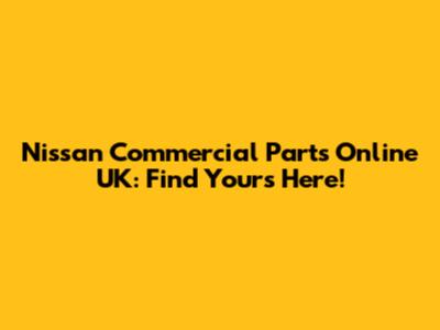 Nissan Commercial Parts Online UK: Find Yours Here!