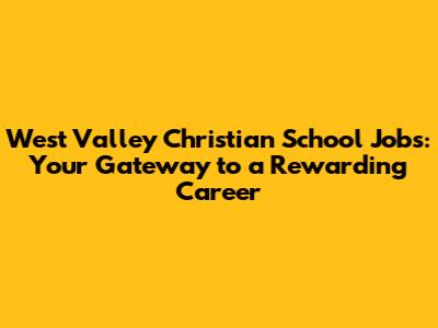 West Valley Christian School: Career Opportunities Await!